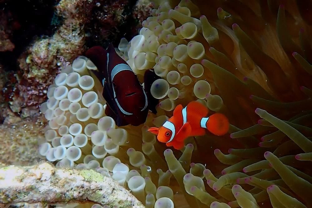 From the lagoon, you can access the spectacular reef drop-off, buzzing with life. From there, you can follow the reef edge and exit the water at the jetty (or the other way around, depending on the current). This whole area has outstanding corals, including pristine branching coral, and you may spot hundreds of fish species around, such as Napoleon Wrasse, several Anemonefish, Butterflyfish, and Angelfish species, as well as Octopus and Lobsters.